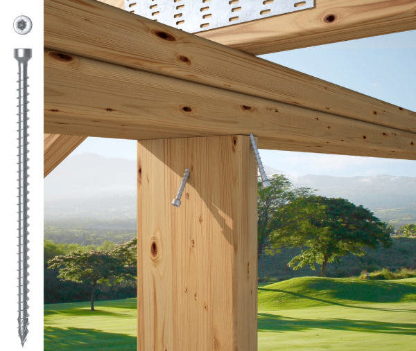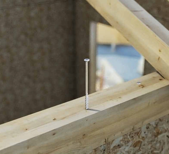 - Dette er en universal treskrue, sertifisert for bruk på CLT (krysslamintert massivtre) og LVL (Kerto) finerbjelker