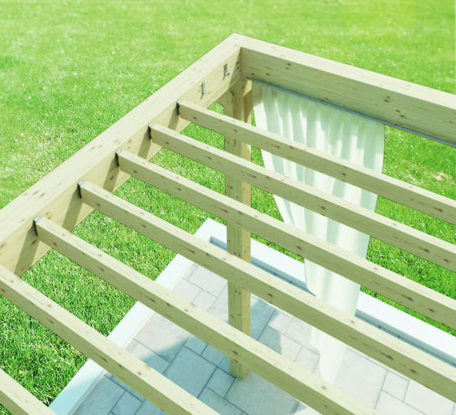 Ønsker man skjult innfesting på f.eks pergola kan man bruke de mindre UV-T eller UV-C som vist under
