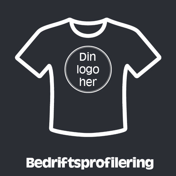 Vi trykker på din firmalogo/profilering uten ekstra kostnad, du betaler kun for oppsett og produksjon av trykkene, selve trykkejobben er kostnadsfri.